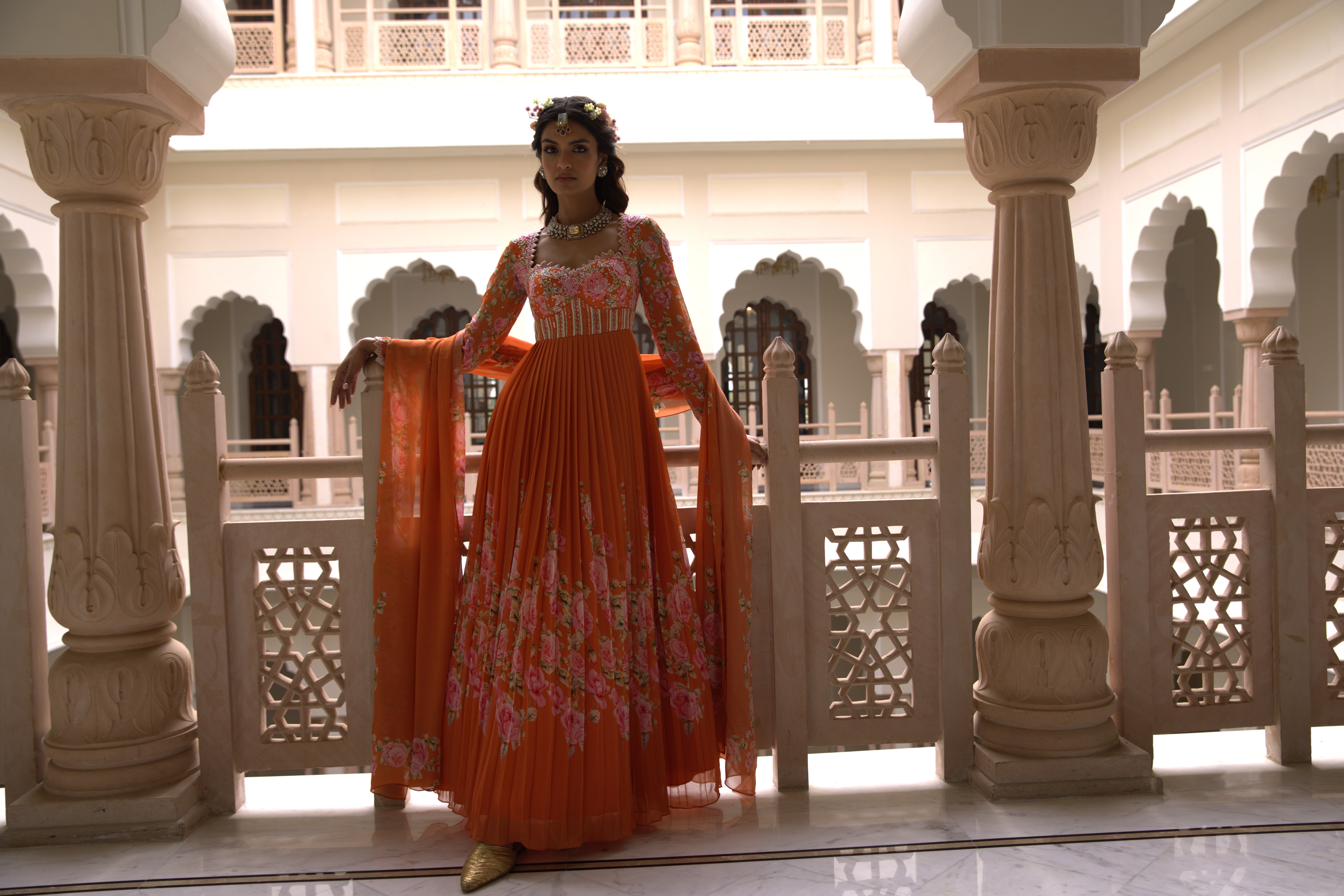 Jharokha is inspired by the ornate windows of royal palaces, where stories of grandeur, beauty, and legacy quietly unfolded. A collection that captures the richness of heritage through intricate design and regal detailing.